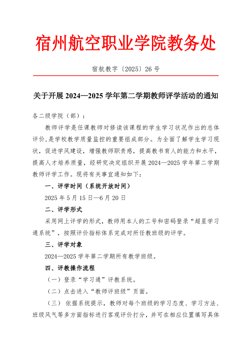 关于开展2024一2025学年第二学期教师评学活动的通知