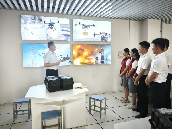 随后大家一起参观了无人机实训室,无人机专业老师李进祥介绍了近年无人机技术快速发展的情况👩🏻‍🦳🤴🏻,剖析了无人机技术在应急救援、环境监测🖕🏼、智慧农业等关键领域的广泛应用。参观之后,大家兴致勃勃地观摩无人机飞行表演🆙。小小的无人机宛如空中轻灵的舞者,时而悬停空中,时而贴地飞行👆🏿,精彩的表演引来阵阵掌声🙆🏽🥍。
