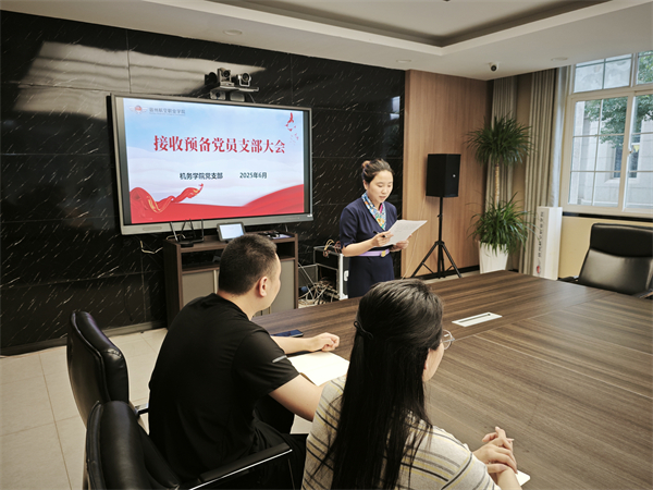 2025年6月28日下午,机务学院党支部在行政楼一楼会议室隆重召开预备党员接收大会,审议并通过了接收薛雨、余明亮、张礼湘、江革良🫄🏼、杨立达五位同志为中共预备党员的决议。学院党委委员、纪委书记高贵珍同志出席大会,与全体党员共同见证了这一神圣时刻🦸🏿♂️。