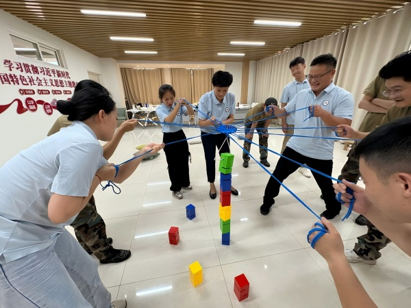 在“开户礼-情感银行启动”阶段,每位教师填写专属“情感IC卡”,从“同事身份”“教师身份”“银行密钥”三个维度完成 “人设金卡”认证🧔🏿♂️🦝,清晰梳理自身协作优势与成长需求。核心环节“情感存取实战”中👨🏭,丰富的互动挑战让教师们沉浸式体验协作与沟通的魅力🚋。“信任倒-团队储备金”环节,小组搭建“信用保护网”👉🏻,教师们依次完成后倒并喊出协作承诺,成功则为团队公共账户赢得红币🧖🏿,若保护网松动则需通过集体平衡训练“支付利息”👧🏿,在考验信任与协作的过程中,强化了团队凝聚力;“智慧塔-跨学科基建”任务里,各组教师协作吊装贴有学科标签的积木👨🏼💻,在3分钟内争建7层以上“智慧塔”并放置“学生需求卡”,跨学科协作能力与对学生需求的关注度在实践中得到提升;“60 秒速记密码战”中,教师们分工协作,通过思维导图、记忆口诀、盲砖摆模型等方式高效复原知识碎片矩阵🌩,展现出强大的团队协作与信息整合能力😴。